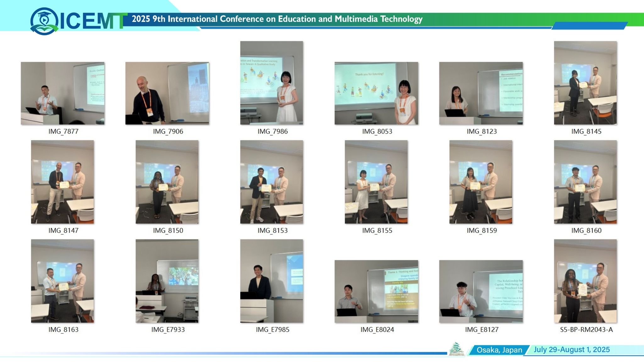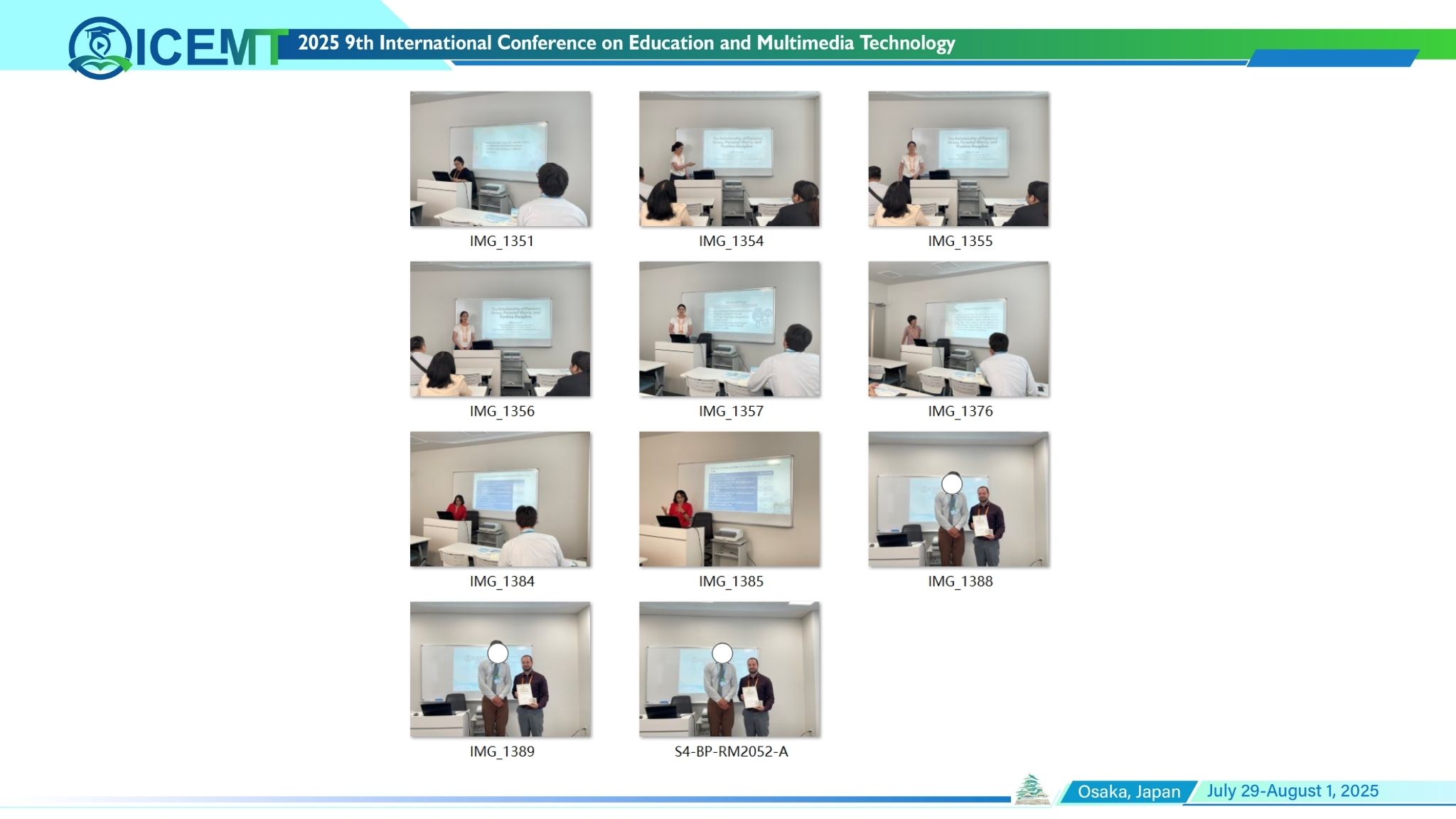 The 9th International Conference on Education and Multimedia Technology (ICEMT 2025) was successfully held in Osaka, Japan from July 29 to August 01, 2025. With the theme of cutting-edge innovation in education and multimedia technology, the conference gathered scholars, researchers, and practitioners from around the world to share advances in intelligent education, AI applications, immersive learning, multimedia systems, and inclusive education.