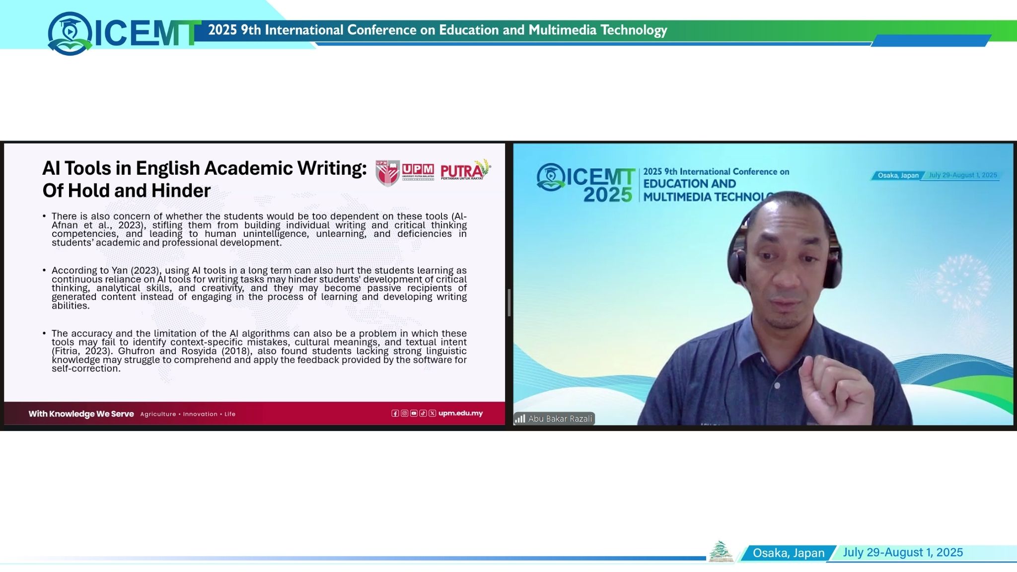 The 9th International Conference on Education and Multimedia Technology (ICEMT 2025) was successfully held in Osaka, Japan from July 29 to August 01, 2025. With the theme of cutting-edge innovation in education and multimedia technology, the conference gathered scholars, researchers, and practitioners from around the world to share advances in intelligent education, AI applications, immersive learning, multimedia systems, and inclusive education.